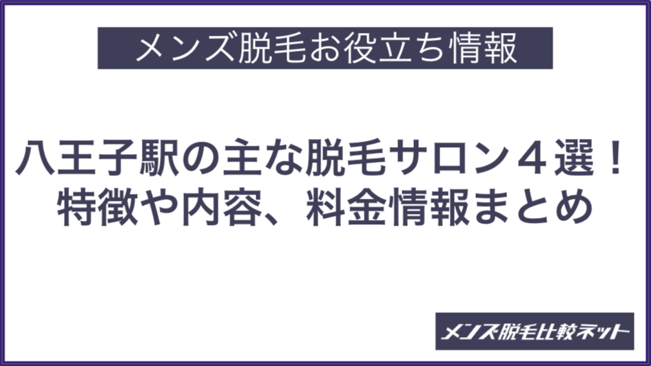 今回は、八王子駅付近のメンズ脱毛サロン・クリニック5施設の特徴や内容、比較ポイントなどについて紹介します。