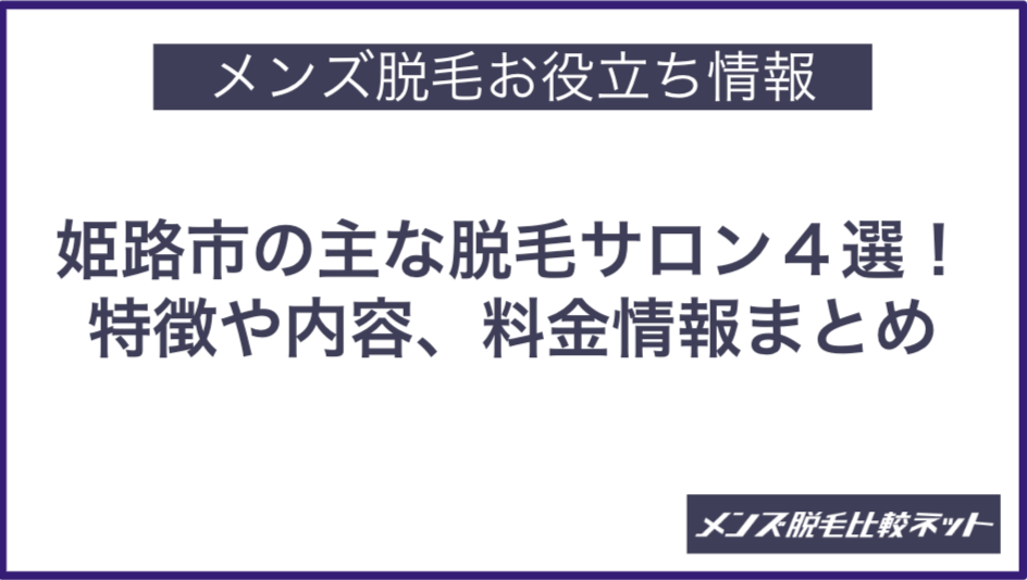 今回は、姫路市内のメンズ脱毛サロン・クリニック4施設の特徴や内容、比較ポイントなどについて紹介します。