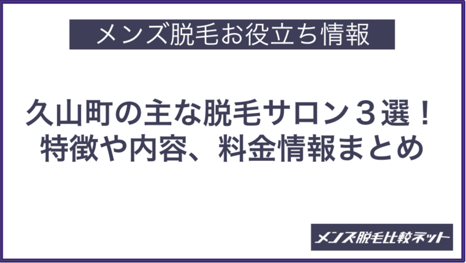 今回は、久山町近郊のメンズ脱毛サロン・クリニック3施設の特徴や内容、比較ポイントなどについて紹介します。