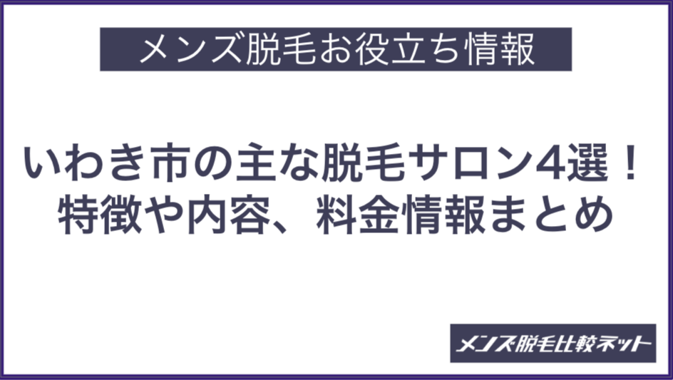 今回は、いわき市内のメンズ脱毛サロン・クリニック4施設の特徴や内容、比較ポイントなどについて紹介します。