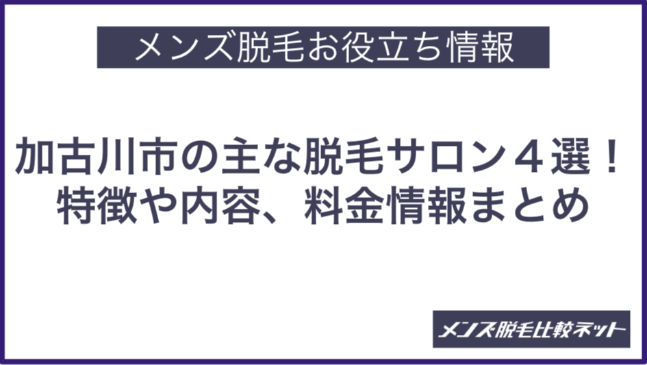 今回は、加古川市内のメンズ脱毛サロン・クリニック4施設の特徴や内容、比較ポイントなどを紹介しました。