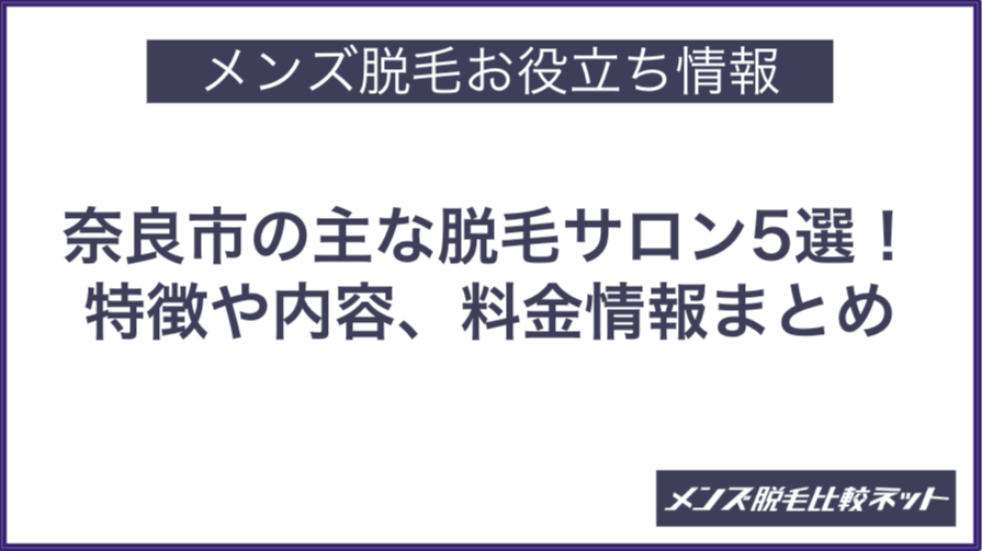 今回は、奈良市内のメンズ脱毛サロン・クリニック5施設の特徴や内容、比較ポイントなどを紹介しました。
