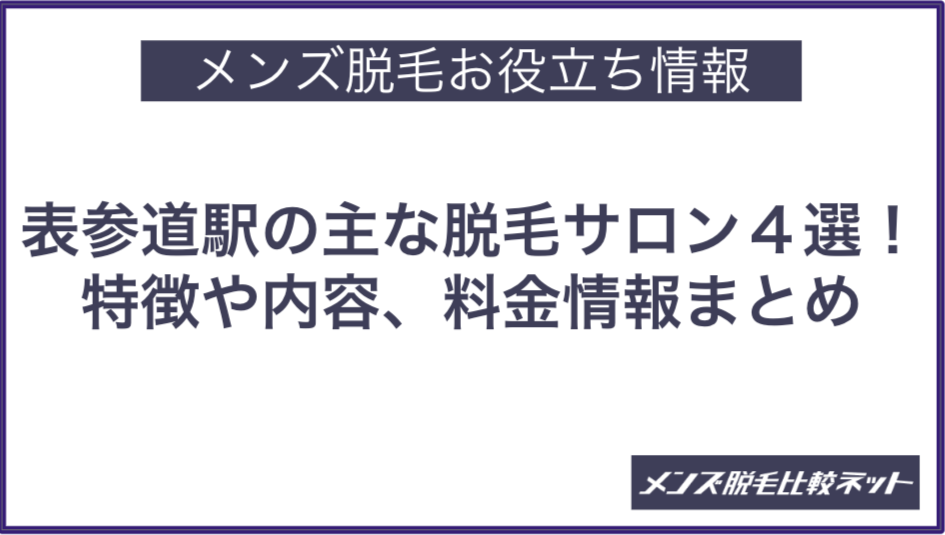 今回は、表参道駅付近のメンズ脱毛サロン・クリニック4施設の特徴や内容、比較ポイントなどについて紹介します。