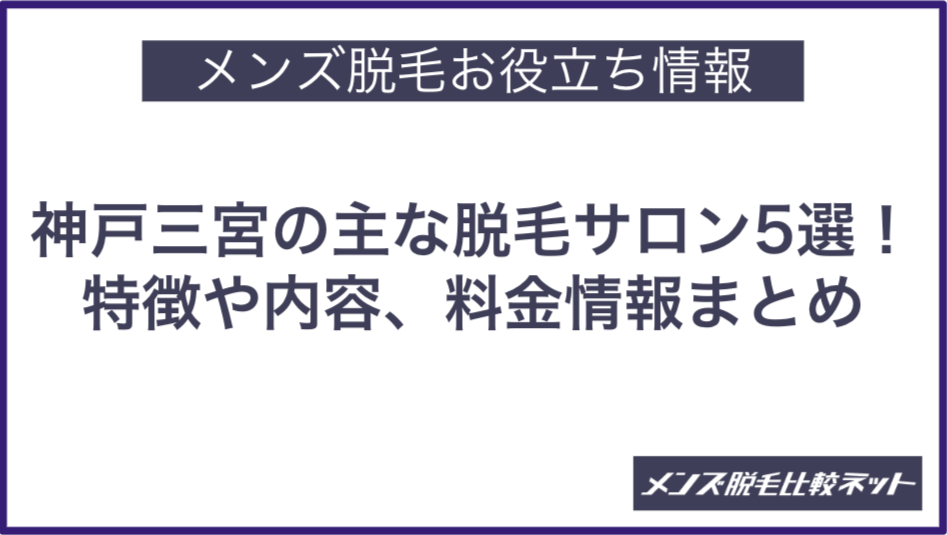 今回は、神戸三宮周辺のメンズ脱毛サロン・クリニック5施設の特徴や内容、比較ポイントなどについて紹介します。
