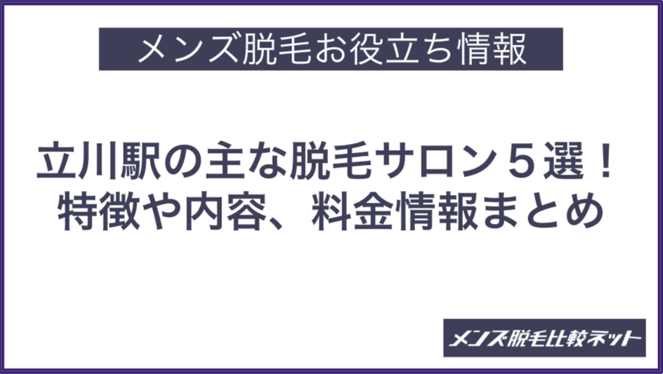 今回は、立川市内のメンズ脱毛サロン・クリニック5施設の特徴や内容、比較ポイントなどについて紹介します。