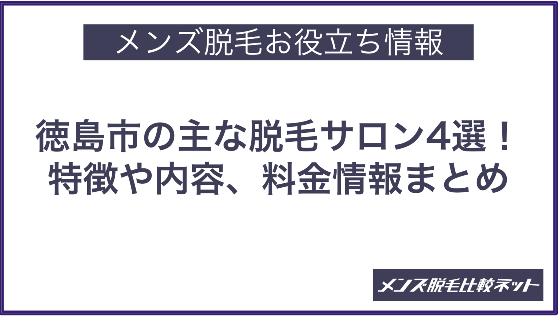 今回は、徳島市内のメンズ脱毛サロン・クリニック4施設の特徴や内容、比較ポイントなどについて紹介します。